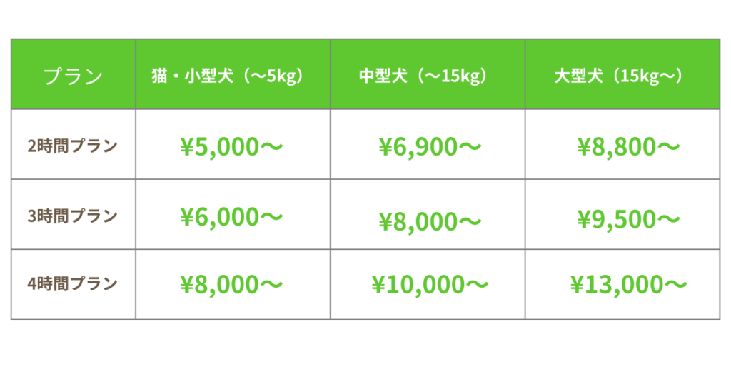 ※ ペットの状態や追加オプションにより料金が変動します